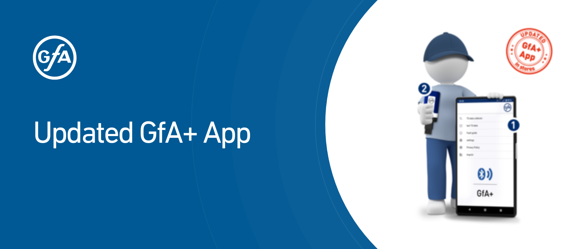 The GfA+ App (➀) was developed for adjusting and servicing doors. Together with the GfA-Stick (➁), the app allows the readout and display of important data from GfA door controls. Data like, software status, connected hardware, programmed adjustments and stored fault logs can be displayed using a mobile device. An update to the app is now available in the respective stores. The following changes have been incorporated: